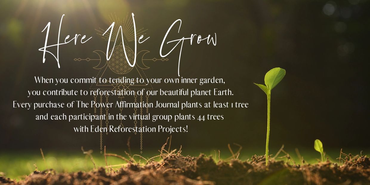 The Power Affirmation Journal aspires to make this world a better place, not only by helping you tend to your inner landscape of thoughts, but also every journal purchased, gives a portion of the proceeds to the Eden Reforestation Project to plant trees around the world!